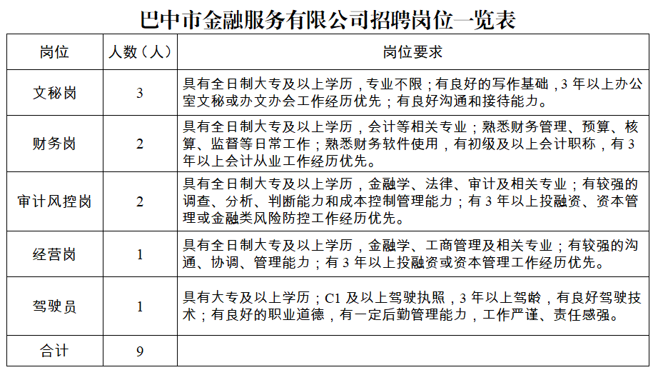 關(guān)于招聘巴中市金融服務(wù)有限公司工作人員的公告
